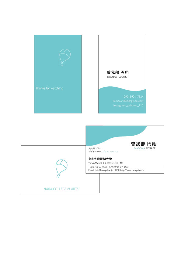 作った自分のロゴを使って作成した名刺です。縦と横でそれぞれオフィシャル用とプライベート用に分けて両面デザインしました。